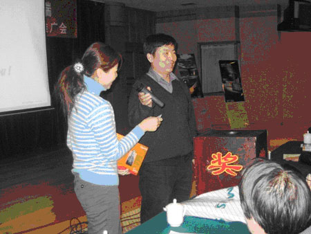 吴世君先生为与会客户精彩的介绍新产品 包头办事处销售经理庞健先生在给幸运客户颁奖