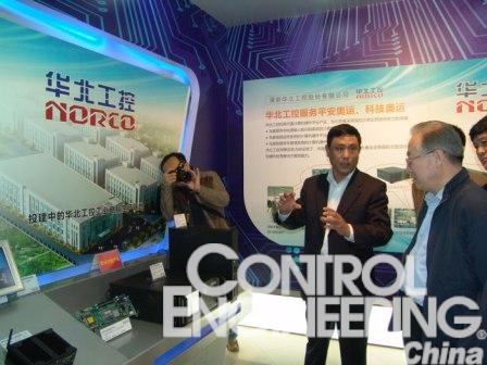 华北工控副总经理谢志浩为调研组讲解公司最新产品\